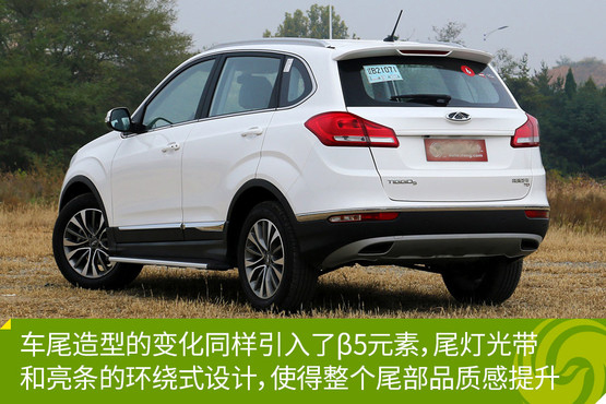 外觀方面,新款瑞虎5的大燈的改變比較明顯,其造型完全由β5概念車移植而來,加入了光導(dǎo)大燈元素,識別度高,同時與LED日間行車燈相呼應(yīng),讓車頭在視覺上顯得更時尚、更精神。