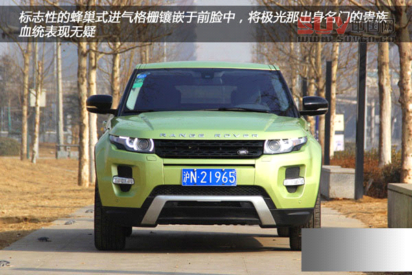 極光飽滿的前臉中充滿了錯綜復雜的線條,雖然它們基本都是以水平直線的方式出現,但是層次感依然分明。標志性的蜂巢式進氣格柵鑲嵌于前臉中,將路虎那出身名門的貴族血統表現無疑。