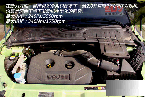 在動力方面,目前極光全系只配備了一臺2.0升直噴渦輪增壓發動機,也算是迎合了當下發動機小型化的趨勢。這臺發動機可以提供240Ps/5500rpm的最大功率和340Nm/1750rpm的峰值扭矩。其實這臺發動機我們并不陌生,路虎神行者2、捷豹XF、XJL及沃爾沃XC60等多款車型上均搭載的是這臺發動機,只不過各個車型在動力輸出上各自做了相應的調教。