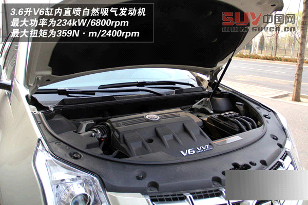 SRX采用了3.0/3.6升發動機,這兩款V6發動機均采用全鋁設計,并包含了缸內智能直噴、DVVT電子可變雙氣門正時以及ECM發動機管理模塊等技術,3.0L最大功率為199kW/7000rpm,最大扭矩為302N·m/3200rpm。3.6L發動機最大功率為234kW/6800rpm,最大扭矩為359N·m/2400rpm。匹配6速自動變速箱。