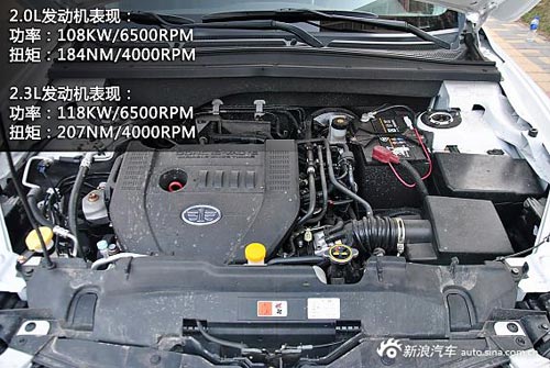 奔騰X80提供有2.0升和2.3升兩種動力選擇,其中2.0升發動機的最大功率為147馬力(108千瓦),峰值扭矩達到184牛米;2.3升發動機則可輸出160馬力(118千瓦)的最大功率,峰值扭矩為207牛米。傳動部分,僅有2.0升兩款車型提供6速手動變速箱選擇,其余車型均配備6速手自一體自動變速箱。