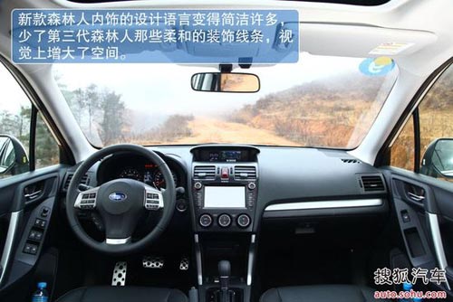 斯巴魯的工程師們使新款森林人的內飾變得更為清新,三代內飾的一些裝飾性線條被取消,看起來更為整潔。與競爭對手相比,新款森林人的內飾使用了更多的軟性材料,面子問題得到很好地照顧。