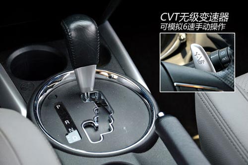 變速箱方面,依舊使用了一臺CVT無級變速箱,除頂配車型外,其余車型都配備了S運動擋。比較可惜的是,只有頂配車型具有方向盤后部的大尺寸金屬換擋撥片。