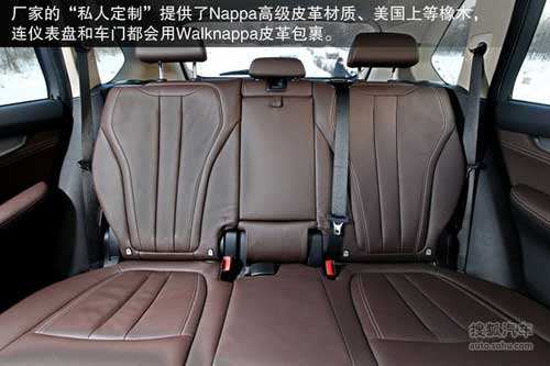 盡管空間沒有太大的變化,但對于X5這個級別的車型來說,乘坐空間還需要去質疑或者測量么,我們似乎更應該關注一下它乘坐的舒適度。Dakota的真皮材質觸感應該說是非常棒的,如果這都滿足不了你對品質的訴求,那么快去“私人定制”吧,廠家還提供了Nappa高級皮革材質、美國上等橡木、連儀表盤和車門都會用Walknappa皮革包裹。