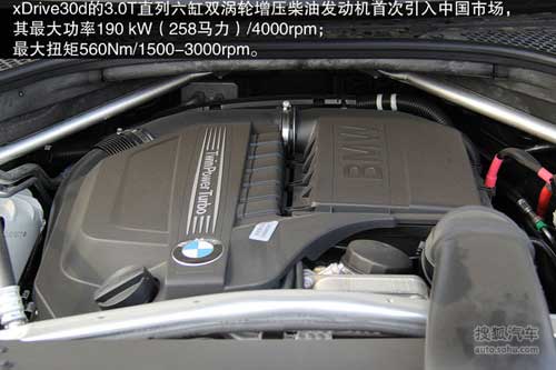 新X5目前裝備三種發動機型號,其中xDrive30d的3.0T直列六缸雙渦輪增壓柴油發動機首次引入中國市場,其最大功率190 kW(258馬力)/4000rpm;最大扭矩560Nm/1500-3000rpm。xDrive35i則搭載的是直列六缸雙渦輪增壓汽油發動機,其最大功率225kW(306馬力)/5800rpm;最大扭矩400Nm/1200-5000rpm。xDrive50i搭載的是4.0T V8雙渦輪增壓汽油發動機,其最大功率可達300 kW(408馬力)/5500rpm;最大扭矩600Nm/1750-4500rpm。新X5車型的所有發動機均配備8AT變速箱,ZF提供的這套8AT的變速箱無論在換擋邏輯、反應度、節油性以及舒適性上都是無可挑剔的。