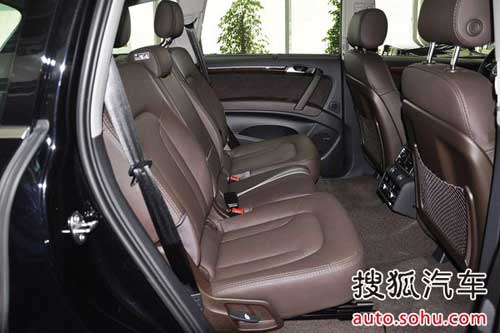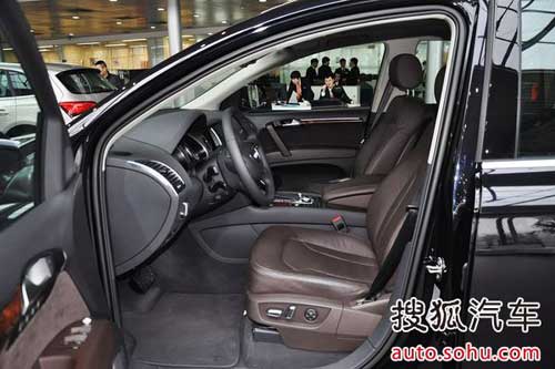 車內配有十多處安全氣囊裝置:正副駕駛安全氣囊、前后排側氣囊、頭部氣簾。還配有自動駐車、陡坡緩降、無鑰匙啟動系統等一系列高端的安全配置。車內及座椅配置方面,奧迪Q7配有真皮包裹多功能方向盤、定速巡航、倒車雷達、倒車影像、座椅加熱及通風功能等人性化配置。多媒體配置方面,配有多碟CD、13個揚聲器喇叭、人機交互系統等高端華麗配置,讓您坐進駕駛室內便能感受到夜店般的視聽體驗。
