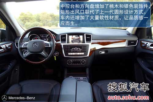 新ML內飾相比之前變得不再熟悉,或者說它是重新設計也一點不為過。其中控臺和方向盤增加了桃木和銀色裝飾件,矩形出風口取代了上一代車型的圓形設計方式。而更加值得表揚的是,新ML的車內增加了大量軟性材質,這讓品質感一應而生,當然在裝配工藝及皮革縫制方面的手藝奔馳家族一貫都是嚴謹和細致的作風。另外,音響控制區域的設計已經和其它車型保持統一,中控屏幕內所包含的信息更加豐富,而尺寸也相應被加大了。