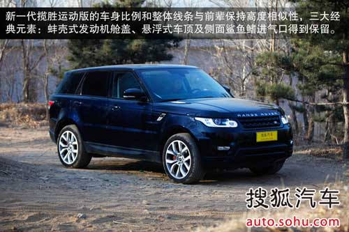雖然外形設計像攬勝極光一樣趨于時尚,對于一個注重傳承的品牌而言,新一代攬勝運動版的車身比例和整體線條依然與前輩保持著高度的相似性,三大經典設計元素:蚌殼式發動機艙蓋、懸浮式車頂及側面鯊魚鰭進氣口也得到了保留。