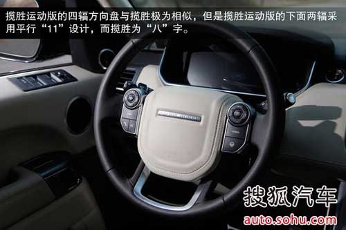 全新一代攬勝運動版與攬勝的內飾的設計雖然非常接近,但是所傳遞的氛圍卻不盡相同。雖然攬勝運動版內飾無論是材質還是制造工藝,都達到了足夠豪華的程度。但也許就是電子換擋桿或者是"11路"樣式的四輻方向盤,或者是連貫的中控臺鋁制邊框和碳纖維飾板。讓攬勝運動版除了豪華外還有了些運動的氣息。