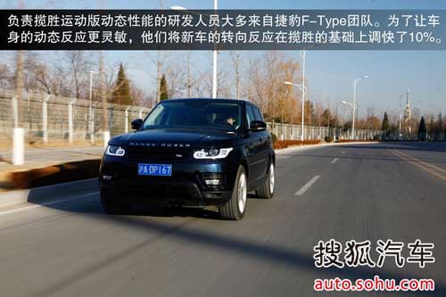 負責攬勝運動版動態性能的研發人員大多來自捷豹F-Type的研發團隊。讓車輛能夠以更快的速度平穩地駛過彎道,他們將新車的轉向反應在攬勝的基礎上調快了10%,工程師還在后橋增加了動態主動式差速鎖,配合扭矩矢量分配制動系。攬勝運動版的主動防側傾系統讓車身在過彎時的重心降低,減少車身側傾。