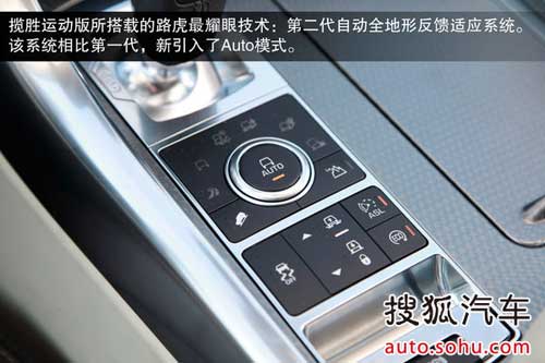 攬勝運動版所搭載的路虎最耀眼的技術:第二代自動全地形反饋適應系統。該系統相比第一代,引入了Auto模式。面對極為惡劣復雜的路況,僅需要駕駛者簡單的操作就可以通過,也不需要有多么高深的越野駕駛經驗。路虎的第二代全地形反饋適應系統變得更加聰明,讓野外駕駛的技巧更為簡單化,它提供了普通駕駛模式、草地/碎石地/雪地模式、泥濘/車轍模式、沙地模式以及巖石攀爬模式。