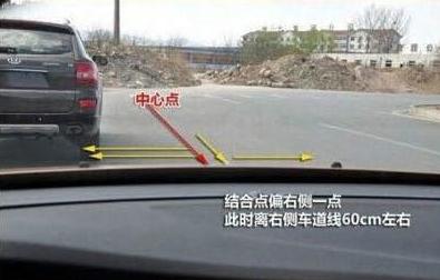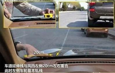 就是正坐在駕駛室里,當(dāng)左惻雨刮器與車身結(jié)合點(diǎn),與車道左惻白線和車頭機(jī)器蓋的結(jié)合點(diǎn)重臺(tái)時(shí),那么此時(shí)的左輪胎就已經(jīng)壓到左惻的白線了。