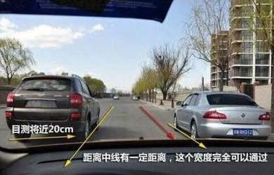 如果用具體的數(shù)字來(lái)說(shuō)的話,也就是車道左側(cè)分道線和車頭結(jié)合點(diǎn)與左側(cè)A柱相距大概為二十厘米左