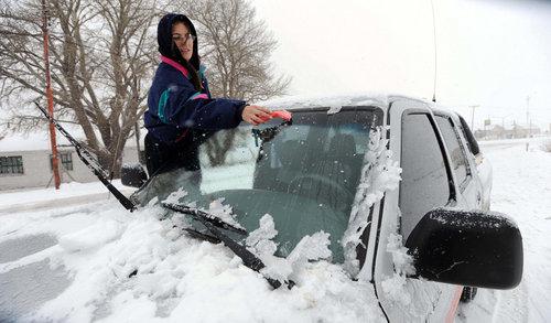 車主可以準備一個硬質塑料刮片,當然,也可用專用的玻璃冰霜鏟,玻璃冰霜鏟更加方便、快捷,而且不凍手。當玻璃上有雪和冰時,使用塑料刮片或玻璃冰霜鏟除去。除冰雪時,要防止把玻璃刮傷,塑料刮片或玻璃冰霜鏟不能來回刮,應該向同一方向推。