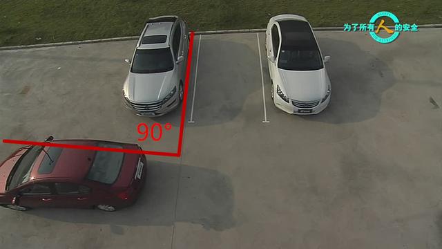 過了車頭后,如上圖所示,就可以把注意力轉(zhuǎn)移到左邊。只要注意到左邊車尾與旁邊車身的距離。然后看你自己的車身與旁邊車平行時(shí)(或者與地面標(biāo)線平行時(shí))將方向回正。