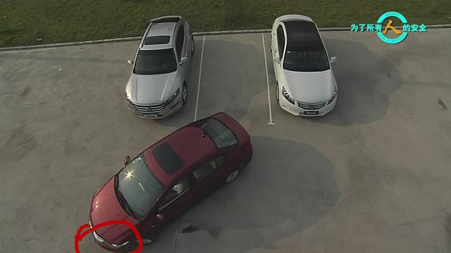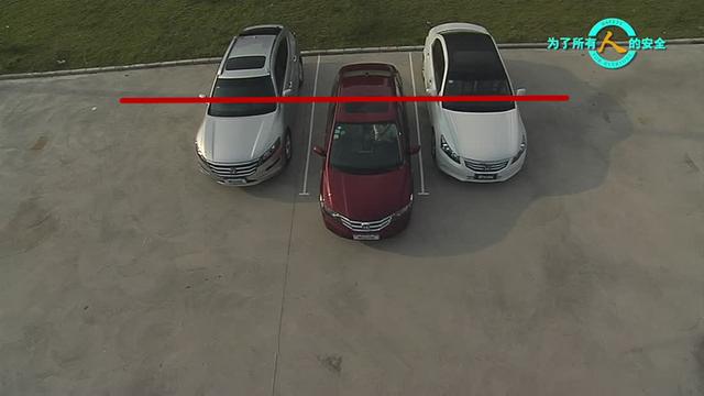 上圖就還得將車后退到后視鏡在一條紅線上,這樣你的車停的位置就和旁邊的車很整齊劃一。