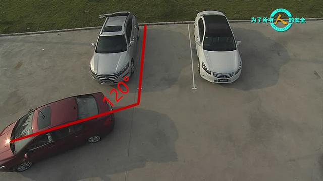 有些人說,我在車?yán)镌趺磁袛?20度角度呢?其實(shí)這就是一個(gè)方法,也不是說非要120度那么精準(zhǔn)。就是往左斜著打一盤子,讓車身與車庫有一定的角度。