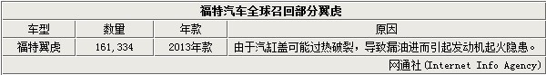 據福特公布的消息,此次涉及召回車型為2013年款福特翼虎,將有161,334輛車涉及此次召回。對于此次翼虎車型全球召回是否涉及國內所售車輛一事,網通社第一時間與長安福特官方取得聯系,對方表示:“此次涉及召回福特翼虎車型為北美地區工廠生產,國產翼虎車型在產地零部件供應商上均與國外車型不同,因此不涉及此次召回。”