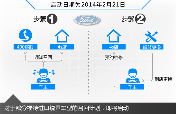 對于此次召回事件的相關信息,記者以消費者的身份致電福特中國客戶服務中心官方400服務熱線并進行咨詢。對方表示:本次公布的部分銳界車型召回將于2014年2月21日啟動,屆時將由福特進口車授權經銷商在召回計劃啟動后第一時間對車主以電話、短信等方式通知。此次銳界召回原因為制造工藝缺陷,部分車輛的燃油管脈沖阻尼器金屬外殼,或將在極端環境下產生破裂并導致燃油泄漏,而泄漏的燃油一旦遇到高溫或火源將引發火災。