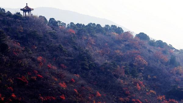 佇立在公園文化廣場,可欣賞蟒山最美的紅葉坡。朵朵片片的艷紅點綴著疊嶂峰巒,斑斕的色彩、藍天、白云、山川構成一幅醉人的金秋畫卷。“似燒非煙火,如花不待春”的感覺油然而生。