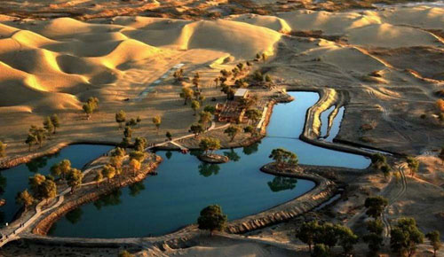 作為大名鼎鼎的“中國(guó)沙漠旅游風(fēng)光之鄉(xiāng)”,達(dá)瓦昆的最奇特之處就是浩瀚的大漠環(huán)抱著一個(gè)清澄的湖泊,沙水相依,十分壯觀(guān)。