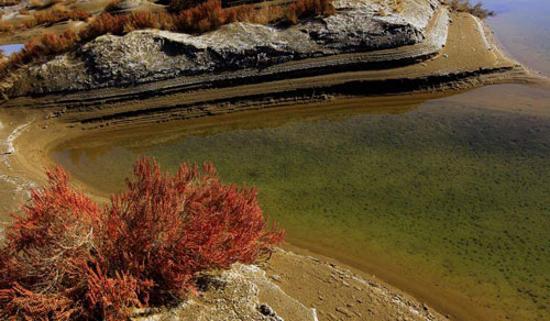 臺(tái)特瑪湖,屬塔里木河的尾閭湖泊,20世紀(jì)50年代面積約80平方公里。此湖泊一度干涸,現(xiàn)已重新出現(xiàn)。