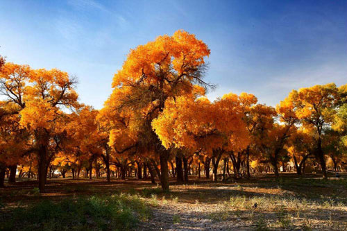 大漠和胡楊是額濟(jì)納永恒不變的兩大主題。日出、落日這兩個(gè)時(shí)段是欣賞胡楊的最佳時(shí)間,無(wú)論是沙漠、河流、廢墟還是胡楊林,都沐浴在金色的陽(yáng)光中,美不可言、無(wú)比驚艷。