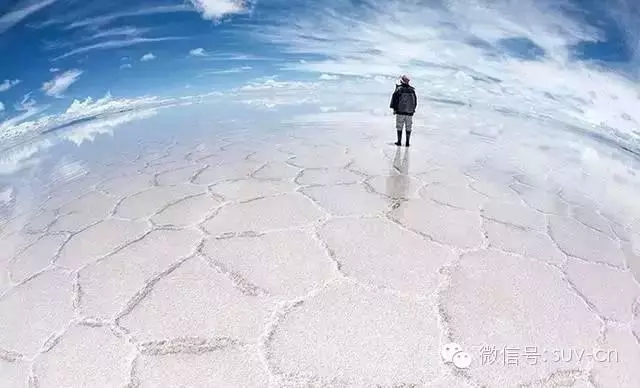 行走在鹽沼上,就好象處于一種虛無的狀態,面積巨大的鹽沼對陽光的反射讓天空與自身完美的融合在了一起。