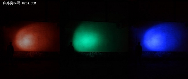 紅光照明可以保護人眼的暗視力,夜晚營地中使用比如大家一起吃個飯啊帳篷內找個東西,哪怕是起來看看書或者觀察野生動物都是不錯的選擇。綠光和藍光對于漁業、狩獵或者一些戰術要求可發揮功效。另外三色光源的光斑都非常均勻,照明效果良好。