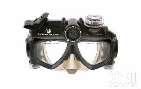 運動攝影品牌LIQUID IMAGE推出的Scuba系列潛水相機面鏡,搭載1080P的HD高畫質錄影,照片也高達1200萬畫素,可利用上方的按鈕選擇拍攝模式,接著只要按下快門就可拍照或錄影,鏡面采強化玻璃,眼罩內也有LED顯示目前的模式??蓾撝?0公尺深,相當適合水肺潛水。只要將眼罩的USB直接插在電腦上就能取得檔案。