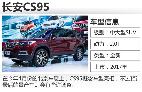 在今年4月份的北京車展上,CS95概念車型亮相,不過預(yù)計(jì)最后的量產(chǎn)車則會(huì)有些許調(diào)整。從亮相的車型來看,CS95定位在7座中大型SUV,此前公布的車身尺寸為長(zhǎng)寬高4945毫米*1927毫米*1759毫米,軸距為2805毫米。