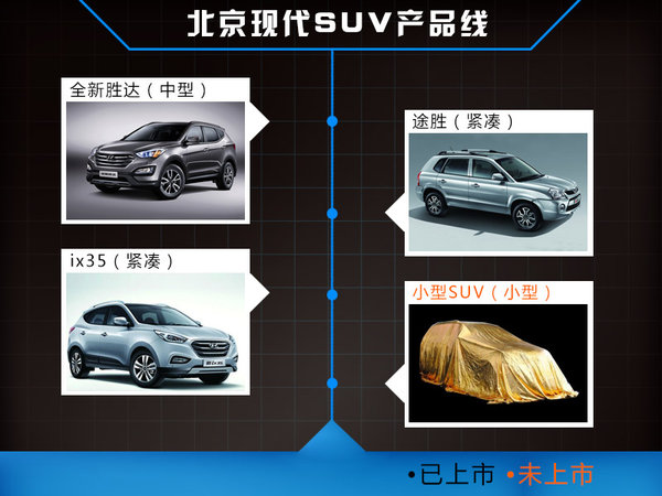 在北京現代的SUV產品陣容中,車型已經涵蓋了緊湊級與中型,其已經對ix35車型進行了改款,中型SUV中全新勝達也已經占據了不小的份額,但是在小型SUV領域其目前并無相應產品推出。此前北京現代品牌傳播部高層人士在接受網通社采訪時透露:“北京現代未來將投產小型SUV,目前已在設計階段”。