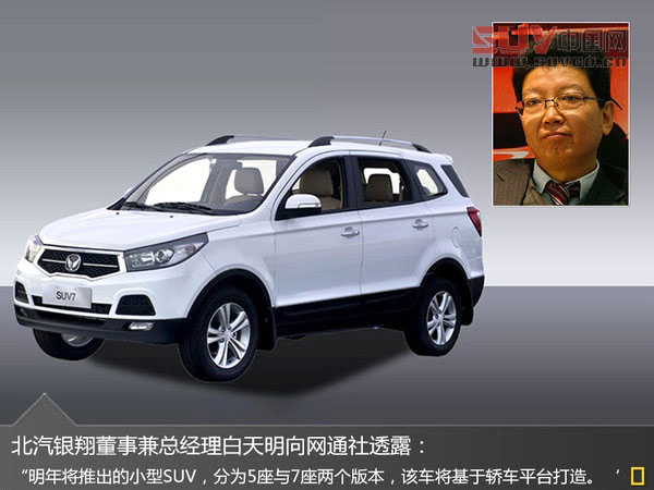 在推出205與306兩款微車后,北汽威旺“轎車化”的發(fā)展趨勢越發(fā)明顯。根據此前公布的規(guī)劃,北汽威旺重慶基地會陸續(xù)推出MPV、SUV等多款小型車。近日北汽銀翔董事兼總經理白天明在接受網通社采訪時透露:“我們在明年將推出小型SUV,其分為5座與7座兩個版本。該車將基于轎車平臺打造,并在明年初正式上市。”網通社在查閱相關資料后獲悉,該款小型SUV軸距或為達到2580mm,在上市后將與福特翼博及別克昂科拉車型同級。