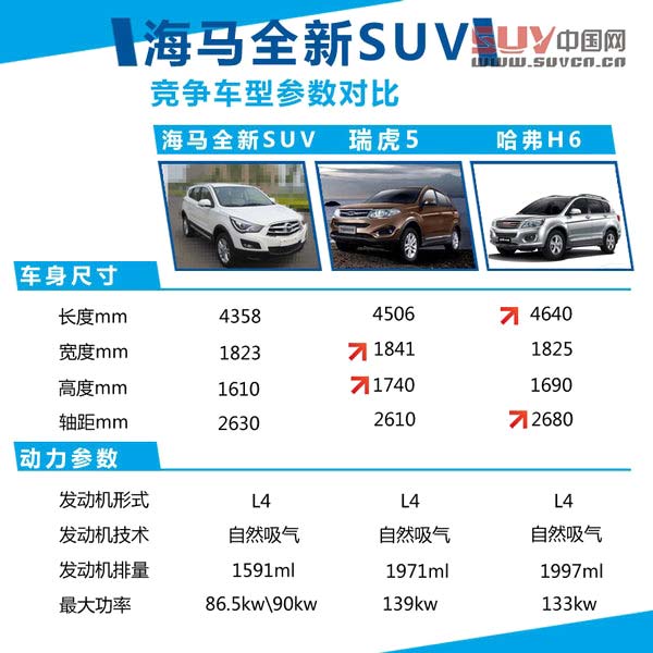 國內緊湊級SUV市場競爭激勵,各大自主品牌均推出了這個級別車型。海馬全新SUV推出后,將直接與奇瑞瑞虎5、哈弗H6等車型直接競爭。新車在車身尺寸上,軸距達到了2630mm,與競爭對手差不并不明顯,而1823mm的車身寬度保證了車內乘坐空間。在動力方面采用自然吸氣發動機,動力滿足日常需求。