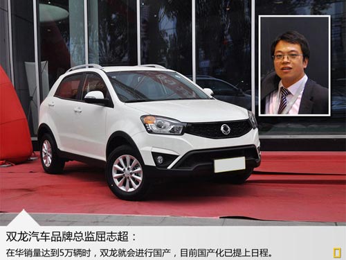 對于雙龍汽車在華今年銷量的大幅增長,將明年銷量目標調至2萬輛,屈志超還表示:“今年是雙龍的品牌提升年,我們開始推廣汽油版車型,這使得我們的銷量有著極大的提升,現階段銷量相當于以前的三倍,今年實現1萬輛的目標沒有問題,明年我們把目標暫定為2萬輛。”按照這樣的增速,雙龍汽車實現在華國產的規劃將會很快實現。