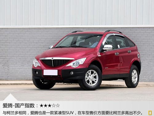 與柯蘭多相同,愛騰也是一款緊湊型SUV。不同的是這款車型的車身結構是非承載車身,擁有更好的車身剛性。越野通過性也高于柯蘭多,同時車型售價也要高出不少(16.98-24.48萬元)。此外,愛騰主推的動力系統也是柴油發動機,與國內的用油情況并不切合。