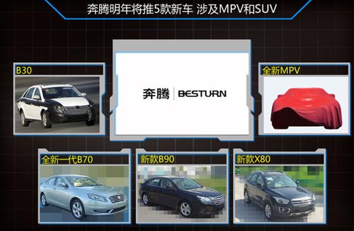 2013年一汽集團針對旗下紅旗、奔騰以及歐朗等品牌,斥重金陸續(xù)發(fā)布了紅旗H7;奔騰全新B50、X80;歐朗兩廂版等產(chǎn)品。明年還將繼續(xù)加大車型投放力度,此前一汽轎車銷售有限公司產(chǎn)品部馬巖部長在接受媒體采訪時透露了未來旗下新產(chǎn)品的投放規(guī)劃:一汽奔騰新一代B70、改款B90、全新MPV等新車都已在緊鑼密鼓籌劃中。網(wǎng)通社針對一汽集團乘用車產(chǎn)品進行梳理后了解到,明年紅旗、奔騰等品牌將推出11款新車,其中將涉及多款SUV和MPV產(chǎn)品。