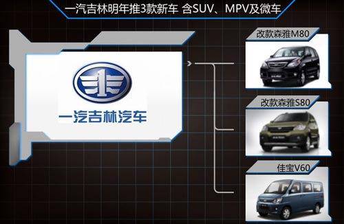 專攻微車市場的一汽吉林,明年也將推出3款車型。一汽吉林高層接受媒體采訪時表示,明年將推出改款森雅M80和森雅S80兩款乘用車,微客方面則是全新車型佳寶V60。通過上述三款新車的加入,從而實現(xiàn)森雅、佳寶戰(zhàn)略產(chǎn)品進一步完善。