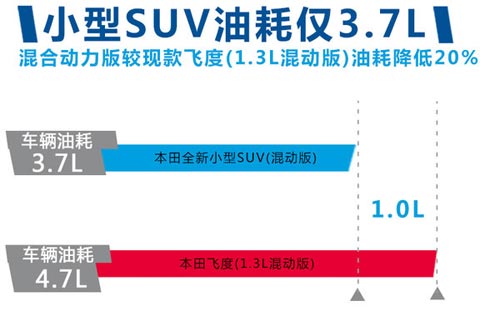 新車在動力方面,全新小型SUV將推出汽油與混合動力兩個版本車型。其中混合動力車型搭載了新一代飛度相似的Sport i-DCD油電混合動力系統(tǒng),其采用了一臺1.5L缸內(nèi)直噴i-VTEC自然吸氣汽油發(fā)動機。與之匹配7速手自一體雙離合器變速箱、電動馬達系統(tǒng)以及鋰離子電池,新車百公里油耗也只有3.7L。相比現(xiàn)款飛度混動版車型,油耗可降低20%。