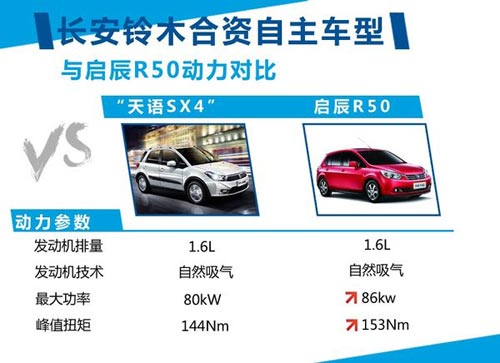 長安鈴木合資自主品牌的首款車型“天語SX4”未來將與啟辰R50等車型展開競爭。該車搭載的1.6L直列四缸引擎,最大功率為80kW,最大扭矩144Nm。而啟辰R50搭載的排量同為1.6L引擎,最大功率和最大扭矩分別高出了6kW、9Nm,在動力方面“天語SX4”并不具有優勢。