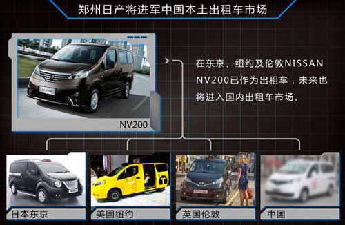 為更好的拉動(dòng)品牌銷量,鄭州日產(chǎn)也在各方面進(jìn)行嘗試,包括之前一直重點(diǎn)考慮攜NV200進(jìn)軍中國(guó)本土出租車市場(chǎng),希望利用這一市場(chǎng)的示范效應(yīng),提升更多的消費(fèi)者對(duì)CDV車型的感知度,加深消費(fèi)者對(duì)尼桑品牌、鄭州日產(chǎn)的好感。而此前NISSAN NV200在日本東京及美國(guó)紐約均已當(dāng)選出租車車型。近日更是有消息稱NV200出租車版本車型將于今年年底在英國(guó)實(shí)現(xiàn)投產(chǎn),并正式進(jìn)入英國(guó)倫敦出租車市場(chǎng)。