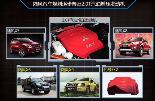 據陸風汽車內部人士向記者透露,未來企業也將逐步在X6、X9以及未來將推出代號為E32等多款SUV車型上搭載2.0T渦輪增壓發動機。同時先期將匹 配來自格特拉克6速手動變速箱,后期還將由國內盛瑞傳動生產的8AT變速箱,從而實現旗下SUV在動力總成上的全面升級。