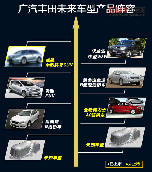 目前廣汽豐田的國產車型陣容已擁有包括雅力士、凱美瑞、凱美瑞尊瑞(混動車型)、逸致以及漢蘭達等5款產品。隨著未來定位于跨界SUV的威颯在華投產后,使該車型也將加入廣汽豐田旗下的國產陣營。