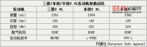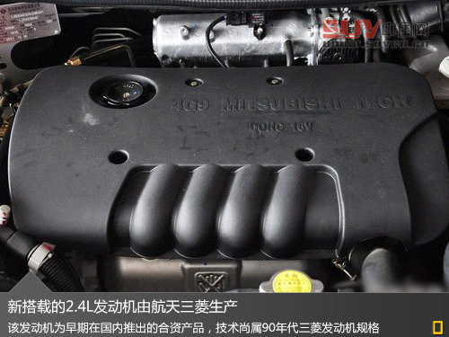 新車將新增的2.4L發動機來自航天三菱,由于該發動機為早期在國內推出的合資產品,技術尚屬90年代三菱發動機規格,所以其最大輸出功率100千瓦、最大扭矩200牛米的技術參數相比現今同規格的發動機來講,并不占太多優勢。