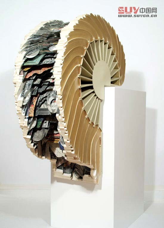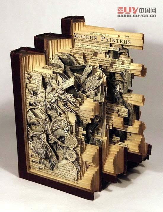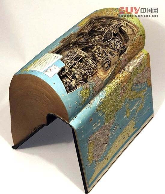 這些書雕作品,引來無數網友的爭論。有人驚嘆,有人稱其為文化的破壞者。要說的是Dettmer的取材都是廢舊的書籍 ,于是有人笑侃這叫化腐朽為神奇。鮮活的書雕讓那些歷史的記憶立刻在腦海里躍動,寓意也很深刻,書籍是人類文明的載體,在那些舊書中用雕刻表現人類的文化和科技,仿佛電影特效中的一格畫面。讓我們感到震撼并且贊嘆的是因為它能用一格畫面觸動你去聯想整個人類文明的長河。