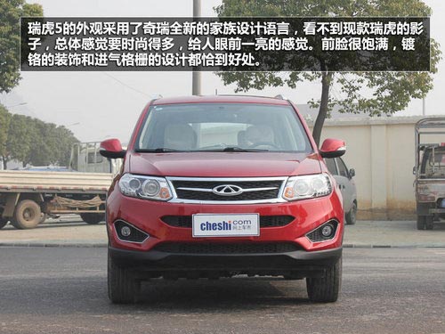 瑞虎5的外觀采用了奇瑞全新的家族設計語言,看不到現款瑞虎的影子,總體感覺要時尚得多,給人眼前一亮的感覺。前臉很飽滿,鍍鉻的裝飾和進氣格柵的設計都恰到好處。