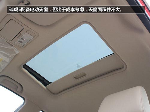 瑞虎5配備電動天窗,但出于成本考慮,天窗面積并不大。