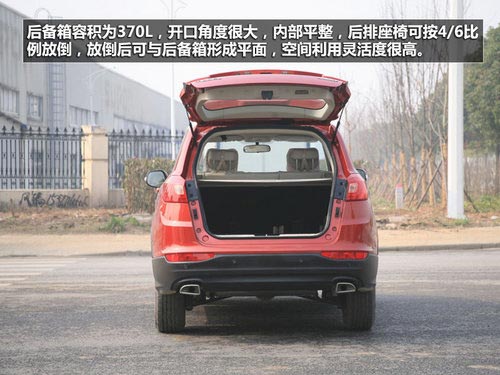 后備箱容積為370L,開口角度很大,內部平整,后排座椅可按4/6比例放倒,放倒后可與后備箱形成平面,空間利用靈活度很高。