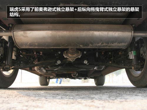 瑞虎5采用了前麥弗遜式獨立懸架+后拖曳臂式獨立懸架的懸架結構。