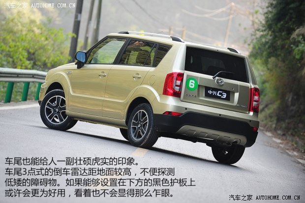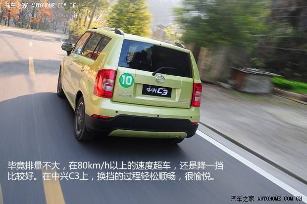 無論是在公路還是非鋪裝路面,中興C3的懸架都能提供不錯的舒適性。它并不是軟得忽悠,而是以略微放慢懸架回彈的節奏來減小車內的上下晃動。特別是在連續的短波路面,這樣調校的優勢更為明顯,坐在車內感覺到的顛簸很輕微。此時車內的乘客看著開車的你也許會覺得很有喜感——你氣定神閑的坐在那兒,而攥住方向盤的雙手卻在哆哆嗦嗦。